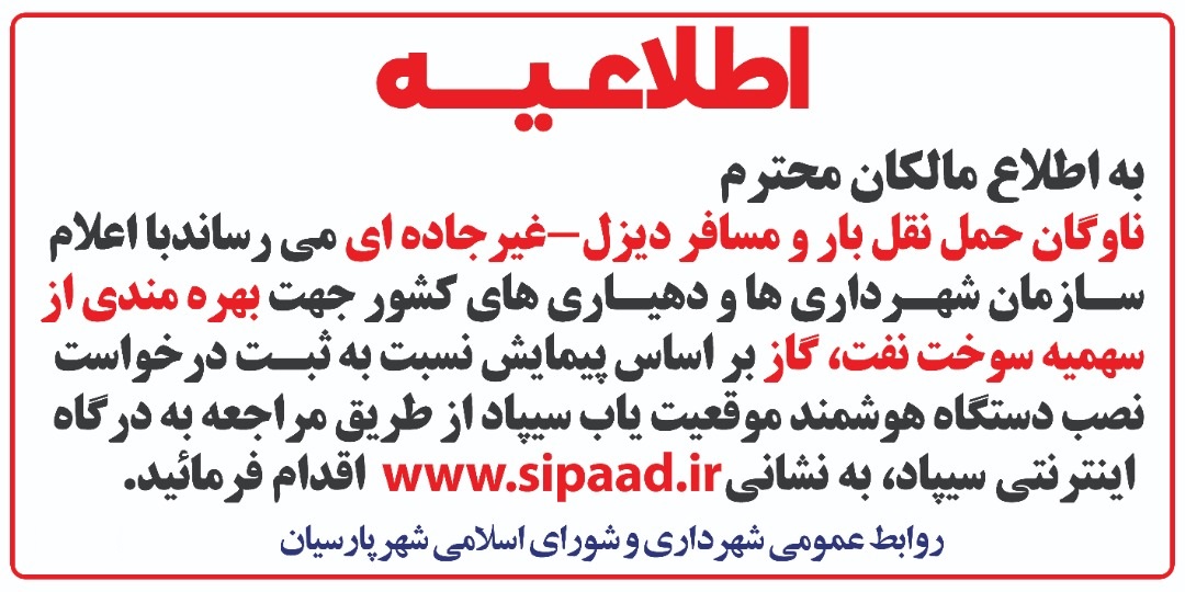 سه شنبه, 18 تیر 1404 *اطلاعیه**به اطلاع شهروندان گرامی می‌رساند:**جمعه‌بازار پارسیان به مدت دو هفته...