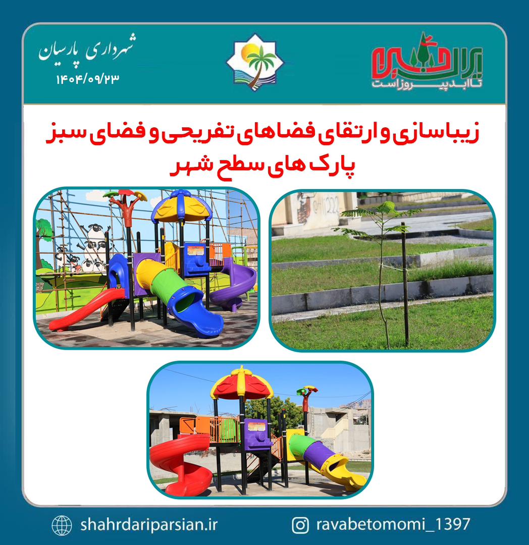 به گزارش روابط عمومی شهرداری پارسیان، در راستای ارتقای کیفیت فضاهای عمومی و ایجاد محیطی ایمن، شاداب و مطلوب برای شهروندان، شهرداری پارسیان در هفته گذشته مجموعه‌ای از اقدامات عمرانی و خدماتی را در پارک‌ها و فضاهای سبز سطح شهر به اجرا درآورد.